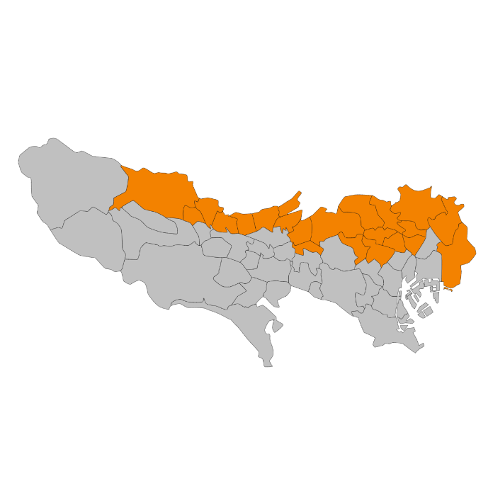新宿区 文京区 台東区 中野区 豊島区 北区 荒川区 板橋区 練馬区 足立区 葛飾区 江戸川区 青梅市 東村山市 東大和市 清瀬市 東久留米市 武蔵村山市 羽村市 西東京市 瑞穂町
